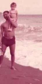 Marie’s first trip to Jamaica, 1964, perched on her father Roy’s shoulders by the sea. For Roy, it was a return to where his story began; for Marie, it was the beginning of understanding where she came from. That shoreline — the same one her father once left — became the first place she remembers feeling completely at home.