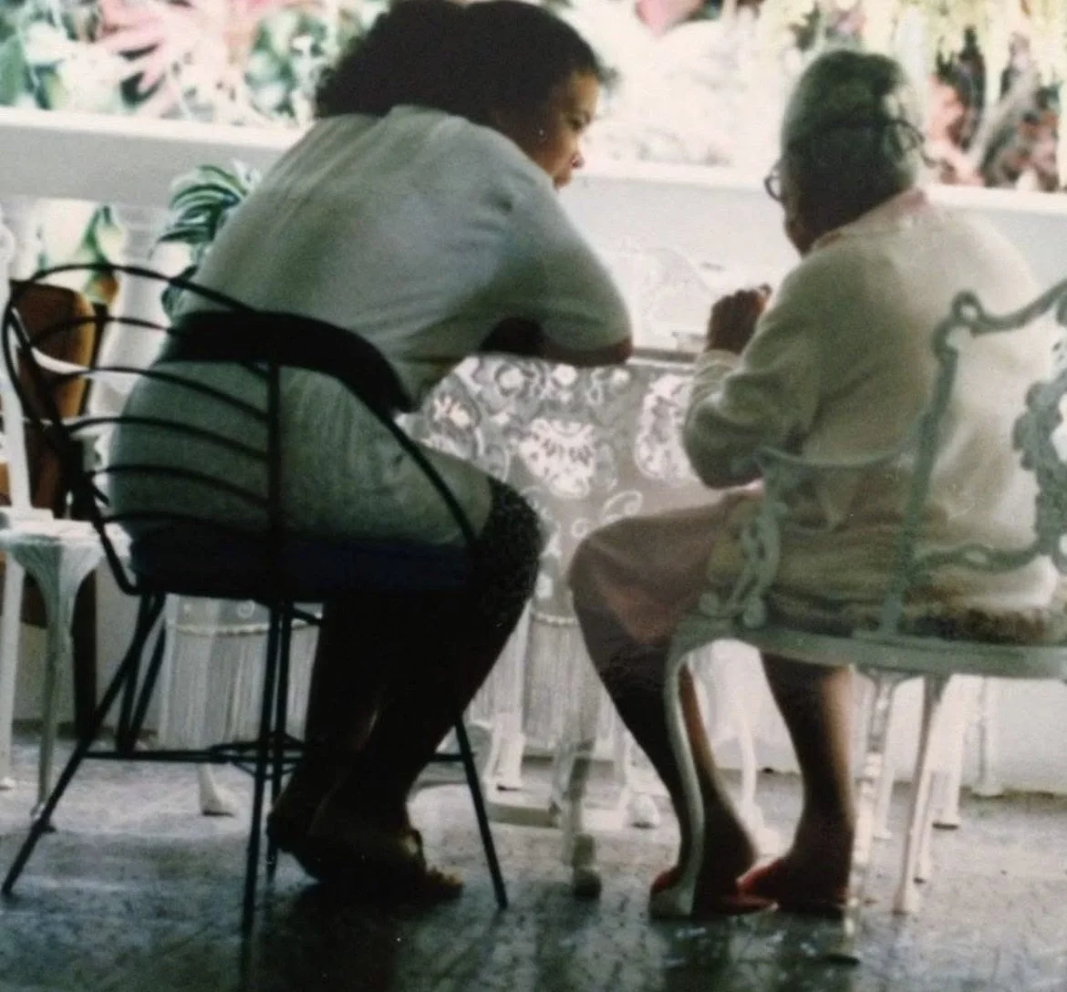 Marie Stephens Thomas visits with her 101-year-old grandmother, Marie Weatherman Stephens, at her home in Jamaica — the last time the two Maries would meet face-to-face. Across the lace table, a century of love and history passed between them in a single afternoon.
