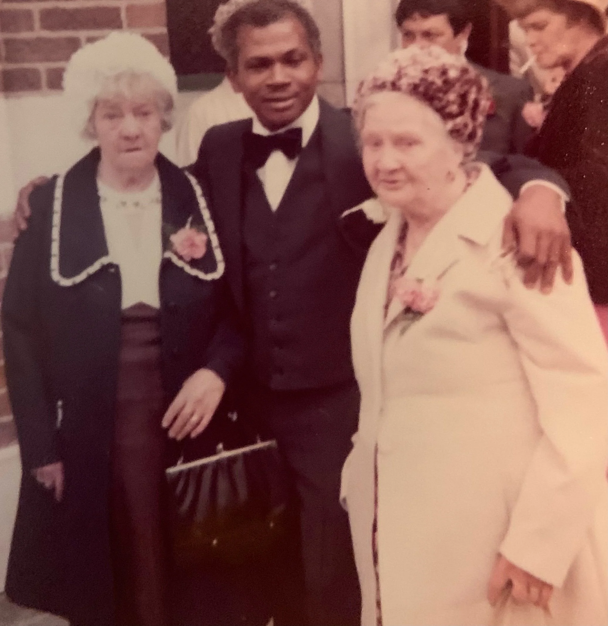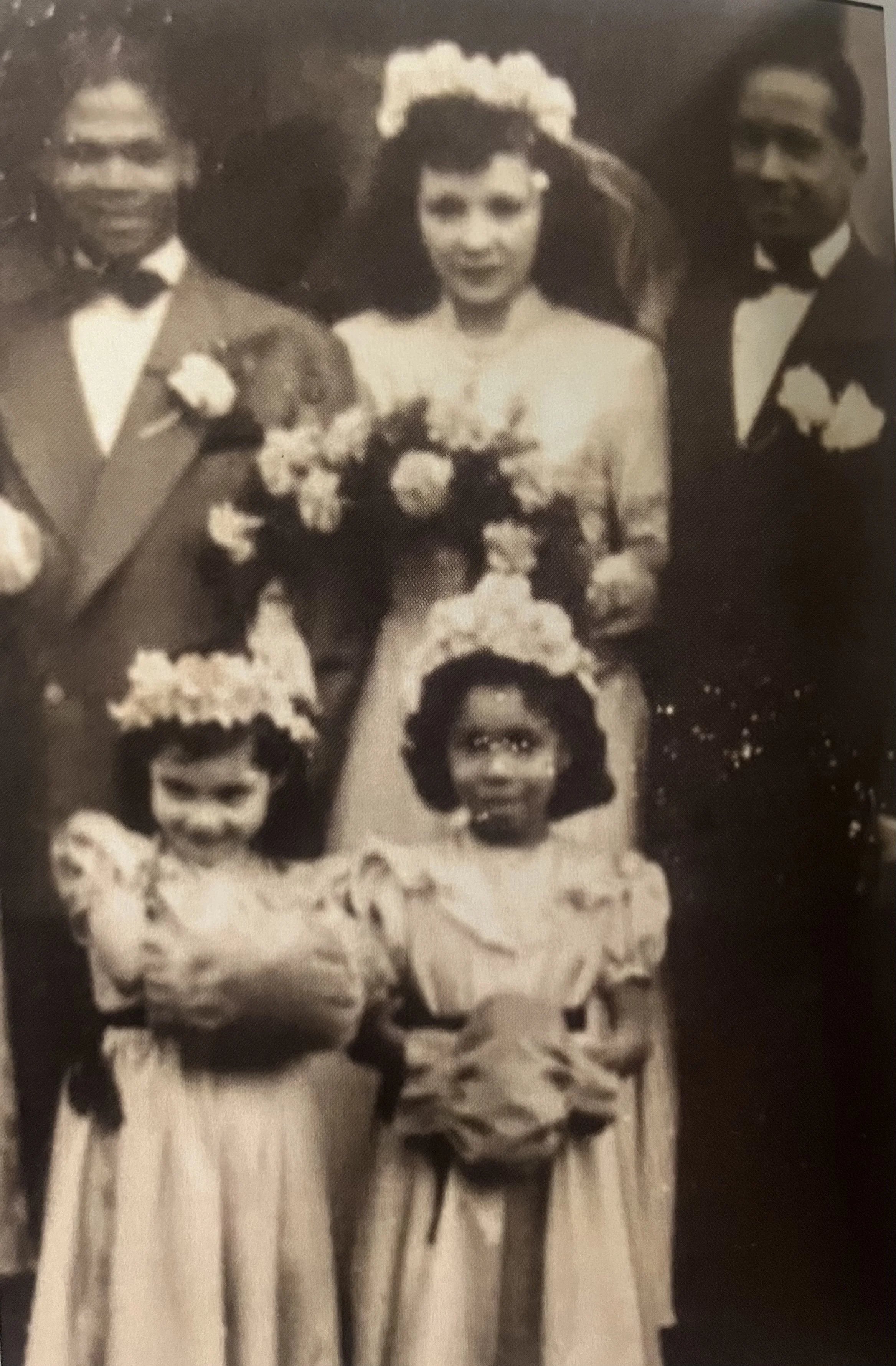 Wedding portrait, St. Peter’s Church, Liverpool, 1949. With Roy’s brother Delroy Stephens and Marie’s cousins, Tina and Melanie.